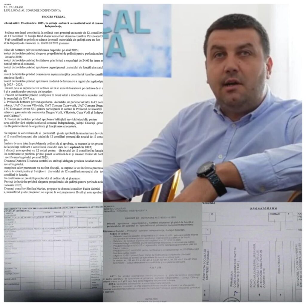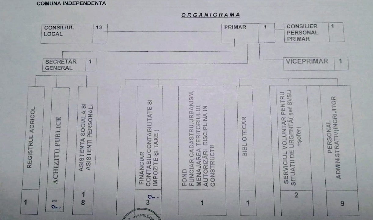 Noul Consiliu Local al comunei Independența nu a avut anterior această organigramă și nu a aprobat-o. Abia acum, la un an de la depunerea jurământului, consilierii locali au primit pentru prima dată documentul în care apare funcția de consilier personal al primarului, un post deja ocupat de peste un an.