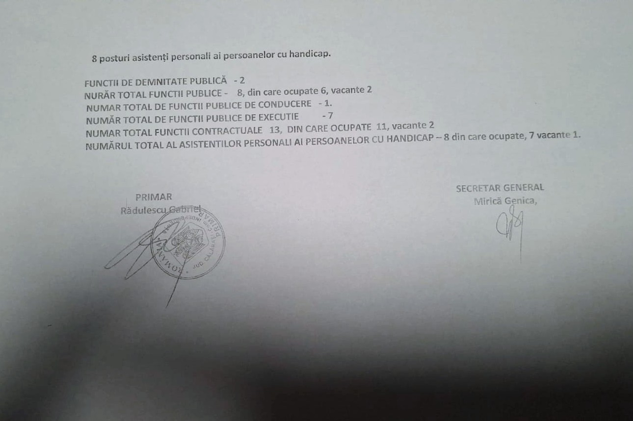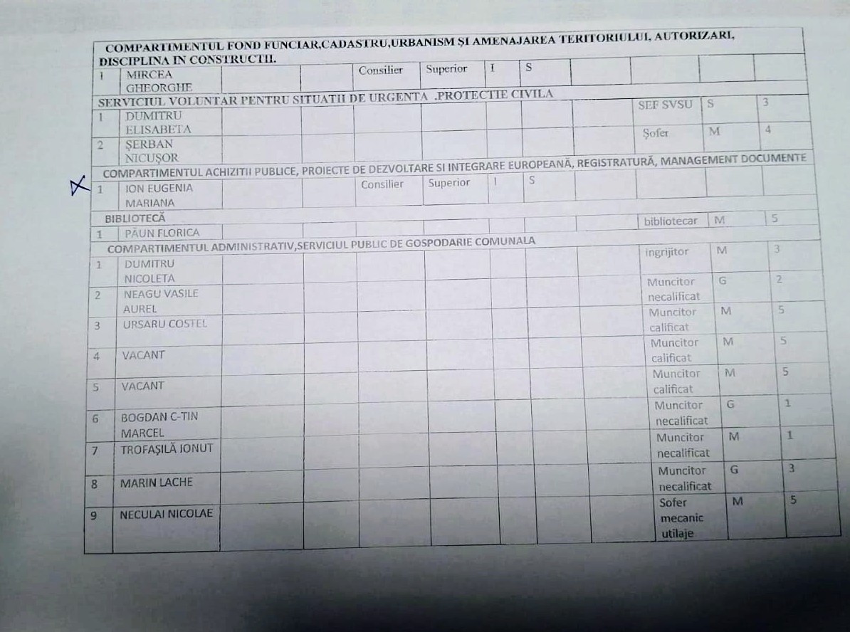 În acea organigramă apare explicit funcția de consilier personal al primarului, încadrată pe studii superioare și trecută ca ocupată.