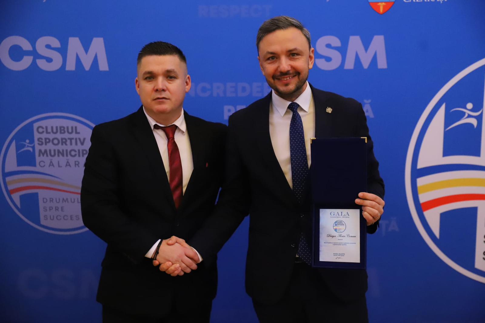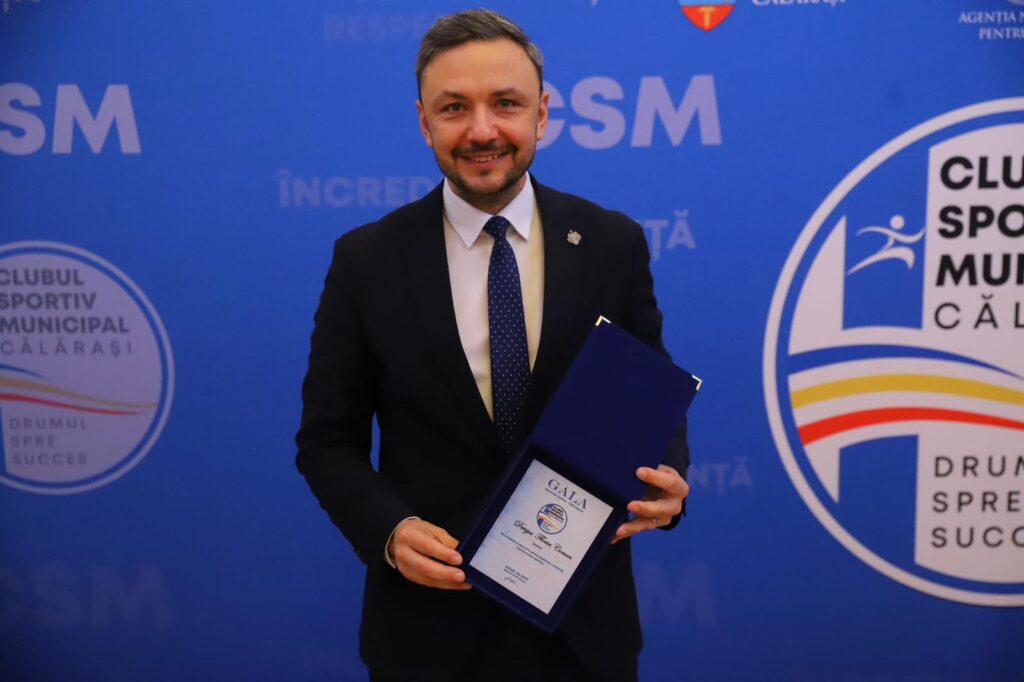 Deputatul călărășean Dragoș Coman, vicepreședinte al Comisiei pentru Tineret și Sport din cadrul Camerei Deputaților, a fost premiat astăzi în cadrul Galei Sportului Local, eveniment de prestigiu găzduit de Clubul Sportiv Municipal, condus de Valentin Anghel.
